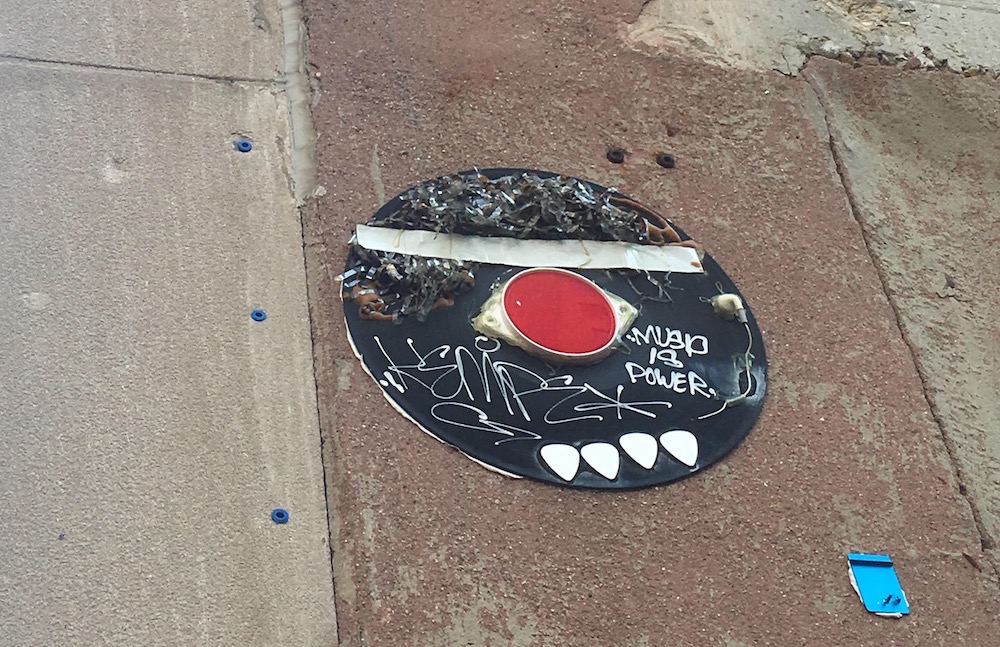 The Indianapolis Star reported on the “mysterious art installation” in October of 2017. A rouge artist created faces around the Indianapolis area using a variety of elements connected to music – guitar picks, cassettes, earbuds and even an iPod.