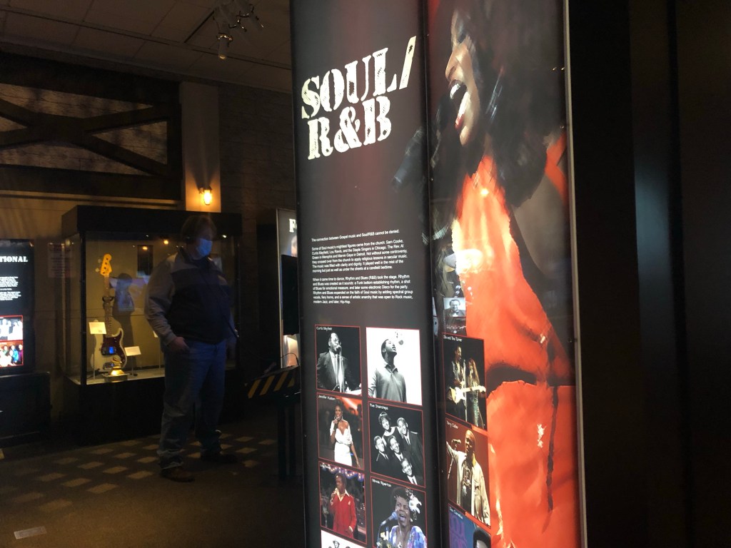 While the video kiosks are fairly basic when it comes to artist info, the most interesting parts of the exhibit are the memorabilia, instruments and other artifacts tracing the music history of the Land of Lincoln.