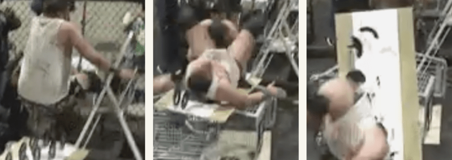 Ouch! Watch this guy get slammed on a bed of vinyl records.